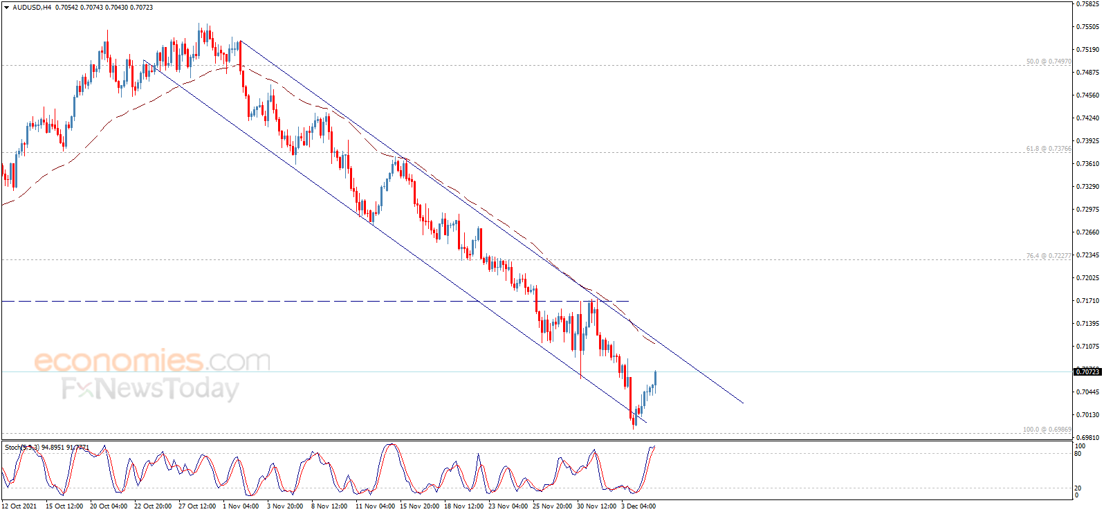 澳元/美元在触及看涨通道支撑线后反弹,并有望升向0.7115附近的通道阻力。
