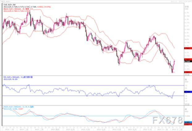 12月8日,美元下跌澳元急升,Omicron担忧缓解提振风险偏好;美元兑几个主要货币周三下跌,人们对Omicron变种对经济打击的担忧有所缓解,尤其是越来越多的数据表明,尽管未经证实,新变种造成的症状比之前想象的要轻。包括澳元在内的大宗商品相关货币是风险情绪改善的主要受益者。澳元兑美元上涨0.8%,至0.7177美元,为一周来最高。日线图上,鉴于MACD看跌信号减弱且RSI自超卖区域反弹,汇价可能会延续自低水平区域以来的反弹行情,该区域包括2020年11月低点和2021年12月低点,接近0.6990。因此多头料将挑战0.7170的阻力位,包括9月低点和上周顶部。不过汇价进一步上涨需要来自8月末和9月底部0.7225-30阻力的确认,若能突破则有望向0.73进发。