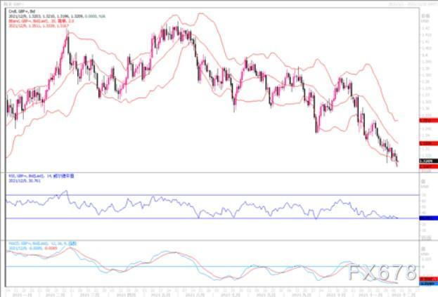 12月8日英镑兑美元在欧洲时段遭遇大规模抛售,一度跌至一年新低1.3163,但随后迅速回升。消息称英国将实施新的防疫措施,这使得英镑无论是直盘还是交叉盘中都遭到抛售的压力。再加上英国与欧盟在《北爱尔兰议定书》问题上的僵局,似乎粉碎了人们对英国央行本月晚些时候即将加息的希望,这反过来又给英镑带来沉重压力。目前为止,英镑/美元保持在阻力下方,这令该货币对继续处于主要看空趋势。英镑/美元在主要看空通道内波动,等待该货币对回落并跌向主要目标价位1.3160。从4小时图来看,英镑兑美元依然承压在各类均线下方,下行态势尚看不到扭转的机会。除非反弹突破1.3355并且保持在这一水平上方,否则看空预期仍将有效。日线图上,各类技术指标开始有钝化迹象,须防范触底反弹的时机和风险。