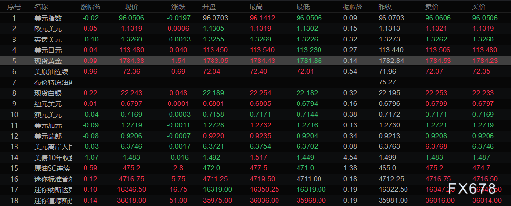 全球主要市场行情一览