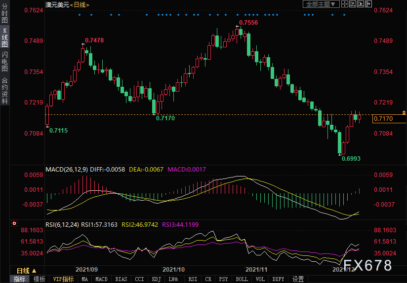 周五(12月10日)在北美市场早盘,在震荡一整天后,澳元兑美元获得了一些积极的牵引力,并在美国消费者通胀数据发布后,在0.7180区域附近创下新高。