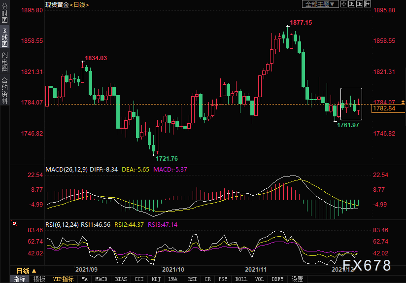 现货黄金本周几乎持稳,周线三连跌势暂止,终盘收于1782.84美元/盎司。本周金价主要以横盘震荡为主,本周大部分时间投资者都谨慎交投,投资者继续衡量Omicron带来的影响以及潜在的通胀上升风险。在美国11月CPI飙升至近40年新高之后,美联储料将在下周会议上宣布加快减码。