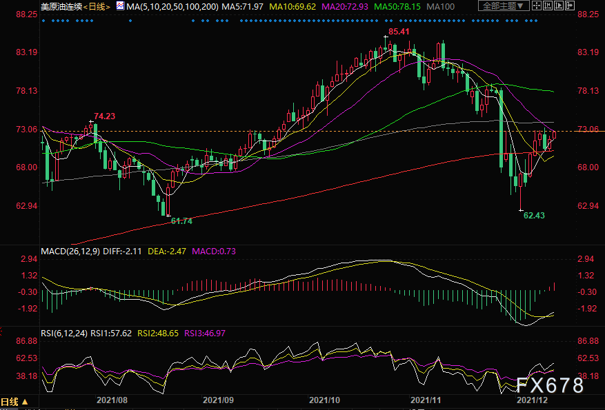 下方若跌破日内低位72.01则看向200日均线70.35,进一步看向11月26日低位67.40。