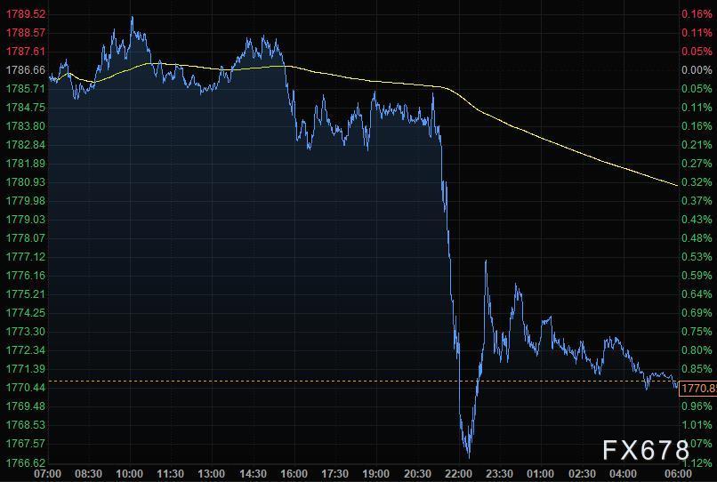 周二,现货黄金一度跌逾1%,创12月3日以来新低至1766.62美元/盎司,因美国生产者物价指数(PPI)飙升,引发市场预期美联储将早于预期加息。