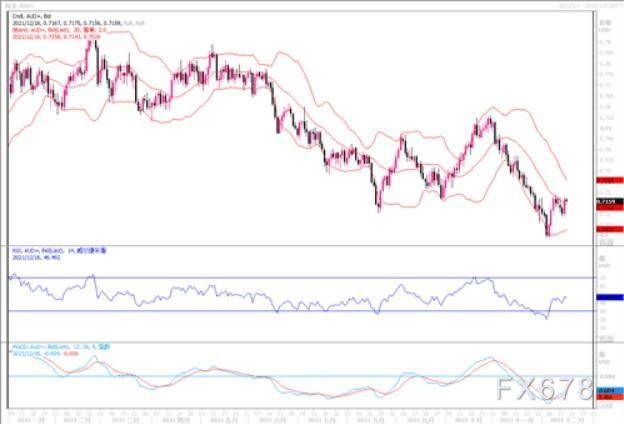 周四早间,澳大利亚公布11月季调后失业率为4.6%,预期5%,前值5.2%;就业参与率为66.1%,预期65.5%,前值64.7%。澳大利亚11月就业人口增36.61万人,预期增20.5万人,前值减4.63万人。数据刺激澳元兑美元产生升幅。但是澳联储主席洛威对于加息态度始终不松口,并表示需要看到3%的工资增长率,才能有信心实现通胀目标;如果世界其他国家收紧政策而澳洲不收紧政策,将导致澳元走软。但昨晚鲍威尔有关加息将在缩减购债之后才能缓慢进行的表态,一度刺激澳元自低位快速反弹。从技术图形上看,短线小时图上,澳元汇价穿破短期均线,各项技术指标想正向区域上扬,显示低位买盘开始加强推动澳元反弹。若上方能冲破0.72阻力,进一步反弹目标区域在0.7270-0.7300区域。而下方0.7090失守的话,则存在继续测试年低位0.6994水位的风险。