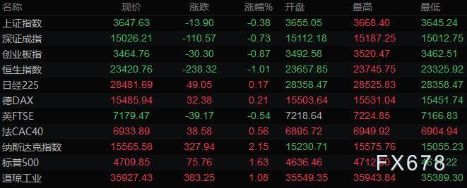 美股收盘情况:标普500指数上涨1.6%,报4709.85点;道琼斯工业平均指数上涨1.1%,报35927.43点;纳斯达克综合指数上涨2.2%,报15565.58点;纳斯达克100指数上涨2.4%,报16289.59点;罗素2000指数上涨1.6%,报2195.209点。