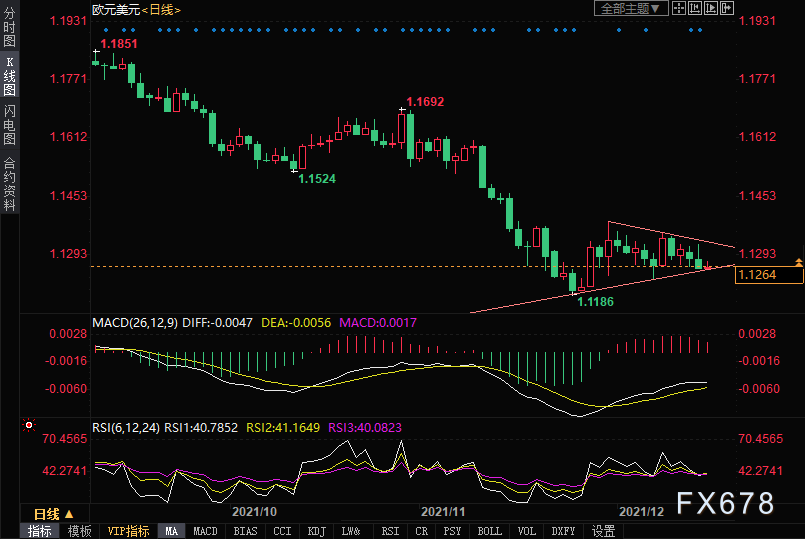 周三(12月15日)欧元兑美元在美联储政策声明发布前窄幅震荡,日内大部分时间在1.1250-1.1275区间内交投。
