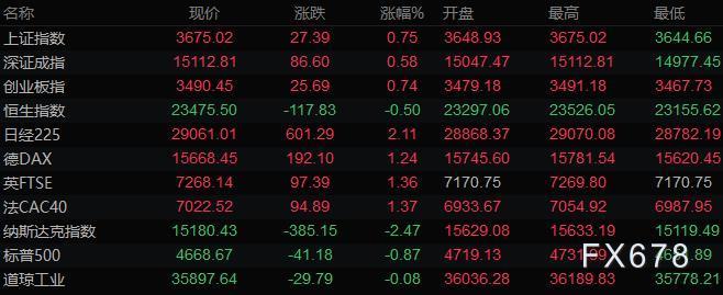 全球主要市场行情一览