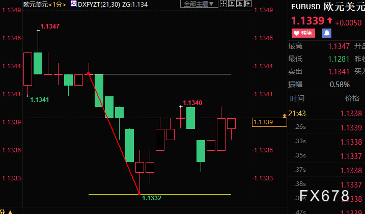 北京时间周四(12月16日)21:30,欧洲央行行长拉加德召开新闻发布会,看好明年一季度经济前景,但强调经济面临通胀和疫情两股逆风。截至发稿,欧元兑美元下沉近15点至1.1332。