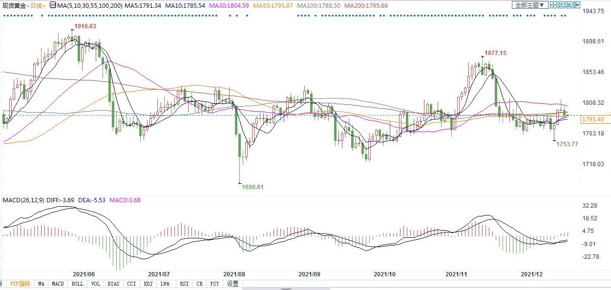 12月20日,现货黄金收跌0.4%,报1790.93美元,12月21日亚洲早盘窄幅震荡。随着投资者在通胀上涨之际寻求其他对冲工具,黄金地位受到冲击,叠加短期圣诞节假期到来,金价恐承压,未来能否上涨需关注奥密克戎病毒变种的发展。