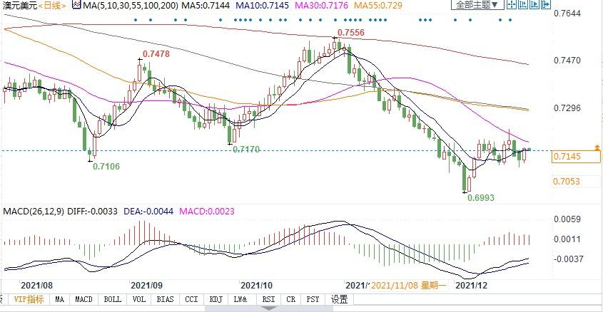 北京时间12月22日9:49,澳元兑美元报0.7150/52。