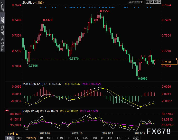 上方需要关注阻力位0.7170、0.7224、0.7273,下方需要关注支撑位0.7106、0.7063、0.6993。
