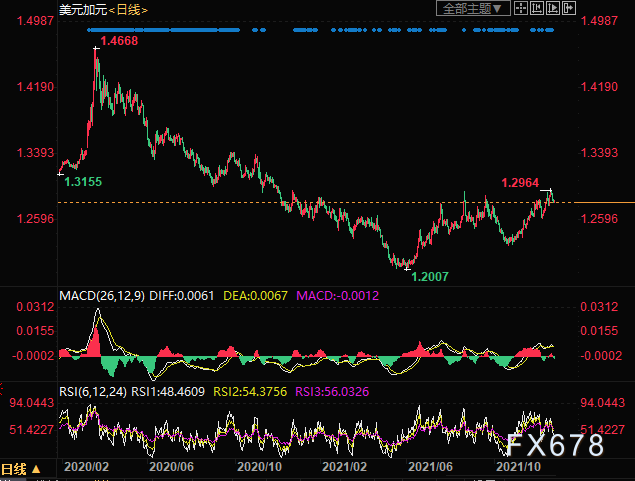 周期性的新冠疫情恐慌扰乱全球市场。最引人注目的是11月26日出现新冠病毒变异毒株奥密克戎的消息。受避险盘美元上涨的影响,美元兑加元上涨突破一个整数关口,自1.2648上涨至1.2786,涨幅1.1%。西德克萨斯中质原油(WTI)自开盘价78.10美元下跌12.8%,跌至68.09美元。