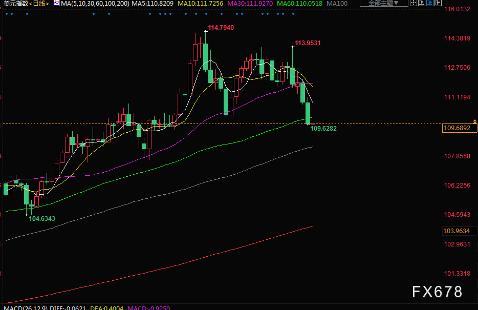 北京时间周四(10月27日)亚市早盘,美元指数交投于109.68附近;美元兑一篮子货币周三下跌超1%,为9月20日以来最低,经济数据疲软坚定了美联储将放缓加息步伐的看法,推动欧元兑美元一个月来首次回到平价之上;金价周三升至两周高位,因市场预期美联储将从12月开始收敛其激进的加息立场,拖累美元和美债收益率下滑;油价急升近4%,受助于美国原油出口创纪录高位,以及美国炼厂炼油量高于往年同一时期的水平。
