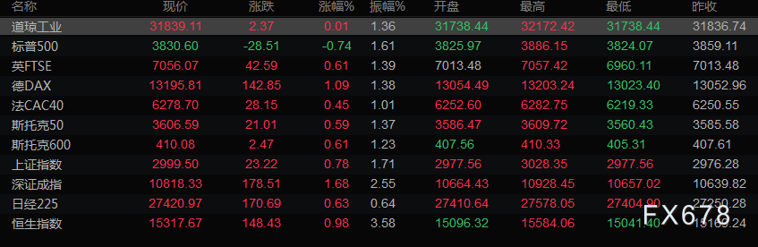 美股收盘情况:道琼斯工业指数微涨0.01%,至31839.11点;标普500指数下跌0.74%,至3830.6点;纳斯达克指数下跌或2.04%,至10970.99。