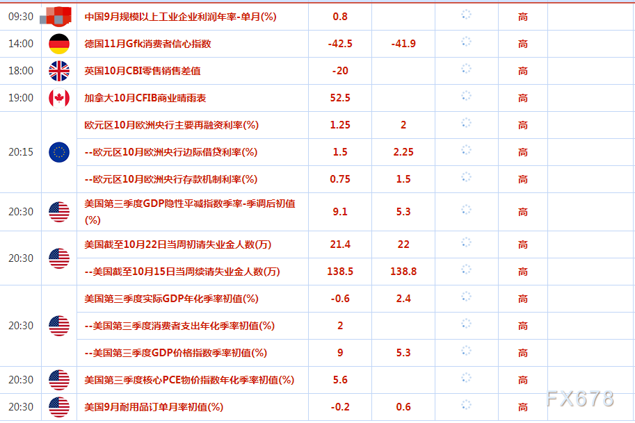 人们仍然普遍预计美联储将在11月加息75个基点。黄金对美国利率上升高度敏感,因为它们增加了持有非孳息黄金的机会成本。现在焦点转向周四的美国国内生产总值(GDP)数据,随后是周五的美国核心通胀数据,这些数据可能为美联储的加息轨迹提供更多清晰度。