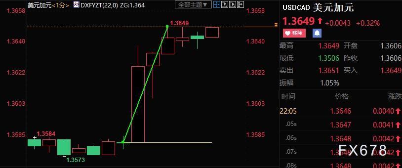 北京时间周三(10月26日)22点,加拿大央行公布新政,加息50个基点,幅度不如先前市场预期。截至发稿,美元兑加元跳涨近70点至1.3650。