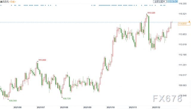 周二(12月28日),美元兑日元在亚洲交易时段一度攀升至月度新高,随后有所回落。市场仍在谨慎评估奥密克戎变体对经济增长的风险,同时,对美联储提前加息的预期以及较短期美债收益率飙升对该货币对构成支撑。同时,在华尔街指数创下历史新高收盘后,整个金融市场又恢复了谨慎的情绪。尽管美国假期销售强劲,但投资者再次评估奥密克戎变体对经济增长的风险。