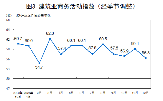 业务活动预期指数为57.3%,比上月下降0.9个百分点,仍位于较高景气区间,表明非制造业多数企业对近期市场恢复保持信心。分行业看,建筑业业务活动预期指数为59.9%,比上月上升1.6个百分点;服务业业务活动预期指数为56.9%,比上月下降1.3个百分点。