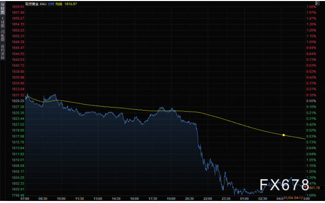 新年第一个交易日,美元指数周一(1月3日)大涨0.57%,至96.21,与美国国债收益率同步,因投资者预计美联储将在2022年加息,美元指数盘中一度上涨0.6%,为11月10日以来最大盘中涨幅。投资者对奥密克戎新冠病毒变种影响的担忧置若罔闻,在特斯拉和银行股上涨的帮助下,标普500指数和道琼斯工业指数周一再创创下收盘纪录高点。现货黄金大跌1.5%,收报每盎司1801.45美元,创逾一个月来最大单日百分比跌幅。油价则小幅收高,因投资者对2022年需求进一步复苏抱有希望。