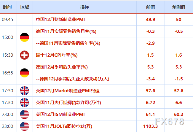 数据公司IHS Markit稍早表示,12月美国制造业采购经理人指数(PMI)终值为57.7,但仍处于扩张区间,初值为57.8。11月建筑支出增长0.4%,预估为增长0.6%。