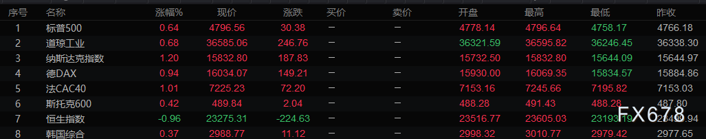 全球主要市场行情一览