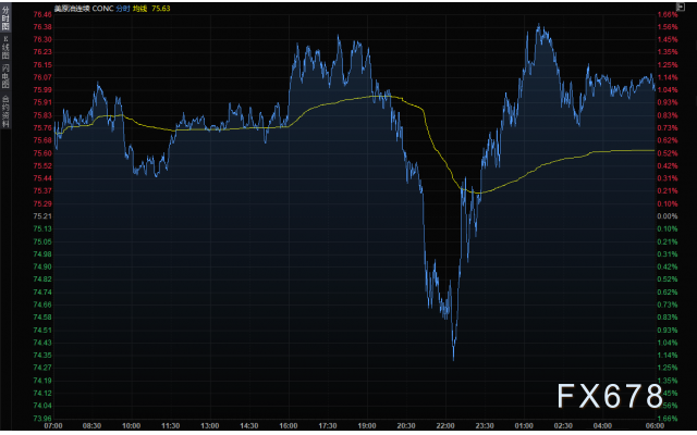 布伦特原油期货LCOc1结算价上涨1.20美元,报每桶78.98美元,涨幅1.5%;美国原油期货(WTI)结算价上涨0.87美元,报每桶76.08美元。