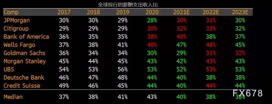 2022年各大投行薪酬支出收入比可能上升