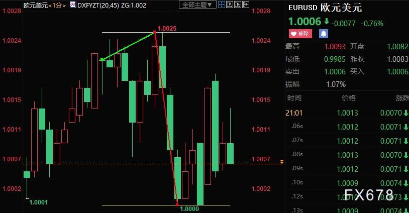 北京时间周四(10月27日)20:45,欧洲央行行长拉加德召开新闻发布会,称经济逆风加剧,高通胀抑制了消费和生产。截至发稿,欧元兑美元下挫20点至1.00,累计波动25点。