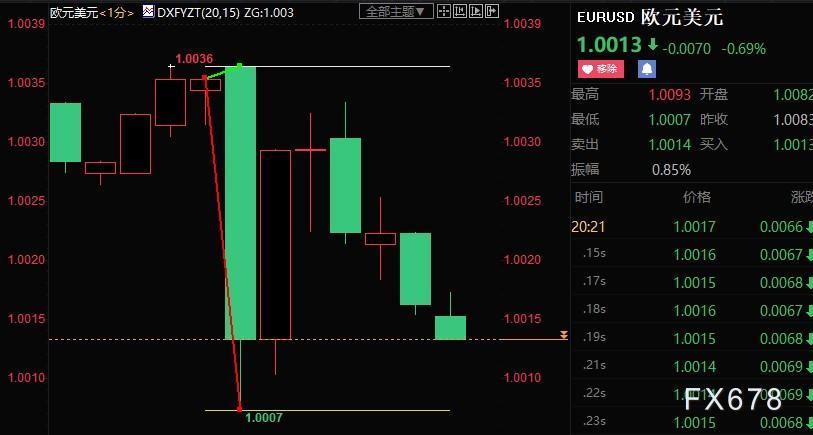 北京时间周四(10月27日)20:15,欧洲央行公布新政,如期连续第二次加息75个基点。市场利多出尽,截至发稿,欧元兑美元一度下挫28点至1.0007。