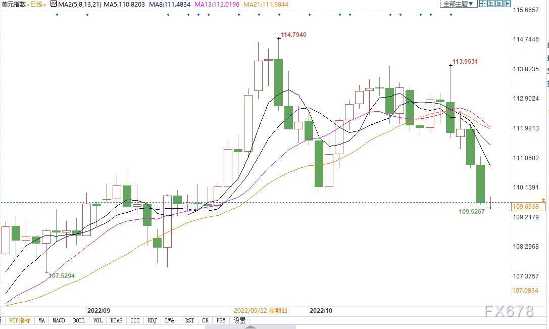 北京时间10月27日14:17,美元指数报109.71