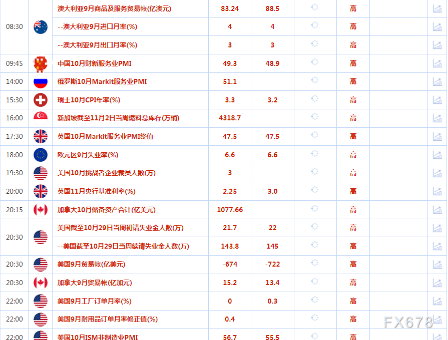 北京时间周四(11月3日)亚市早盘,美元指数交投于112.11附近;美元周三重拾升势,美联储连续第四次将其关键贷款利率提高了75个基点,美联储主席鲍威尔表示,讨论暂停加息以对抗不断上涨的消费者价格还为时过早,因为“没有感觉到通胀正在下降”;黄金先扬后抑,盘中一度跳升超过1%;油价加速上涨,不过指标原油合约结算价最终落在当天的交易区间内,市场早些时候受到美国石油库存再次下降的支持,因为炼油厂在冬季取暖季节前增加了生产活动。