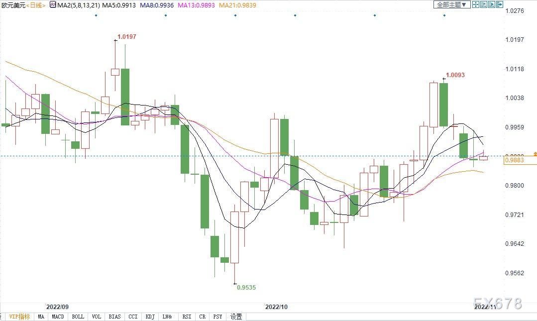 北京时间11月2日14:19,欧元兑美元报0.9884/85。