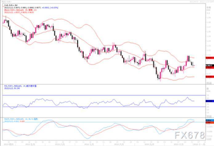 在美联储利率决议前,市场对美联储加息预期的变化继续主导市场走向。11月的加息75个基点基本已被市场预期是板上钉钉,关键随后12月份的加息行动上。美联储在9月发布的利率“点阵图”预测中已经预计,美联储将在12月放缓加息至50个基点,随后在2023年初仅加息25个基点。市场正在期待政策改变的信号,许多人认为鲍威尔将利用他的新闻发布会暗示加息速度确实在放缓,但估计仍旧会拿经济数据说事。技术图形上,日图下行逼近MA20,随机指标倾向进一步走低,暂时保持震荡偏弱。4小时图继续受MA5/10死叉打压,仍偏弱势,下方关注9月低点以来潜在的上升趋势线支持。小时图跌势在0.9900下方有所放缓,但仍缺乏上行动能。整体上欧元兑美元仍保持在布林带中轨线之上。日内留意看0.9850-0.9815区域的支持,以判断进一步走势方向。