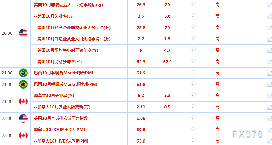 市场现在关注周五公布的美国10月非农就业报告,根据路透调查,华尔街经济学家预测将新增就业岗位20万个,失业率料为3.6%。