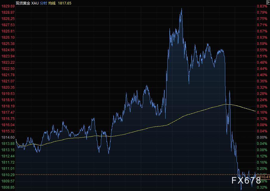 现货黄金周三下跌,收于1810美元附近,因美联储上次会议记录发布后,美债收益率急升,记录显示联储可能需要比预期更早加息,以抑制通胀。