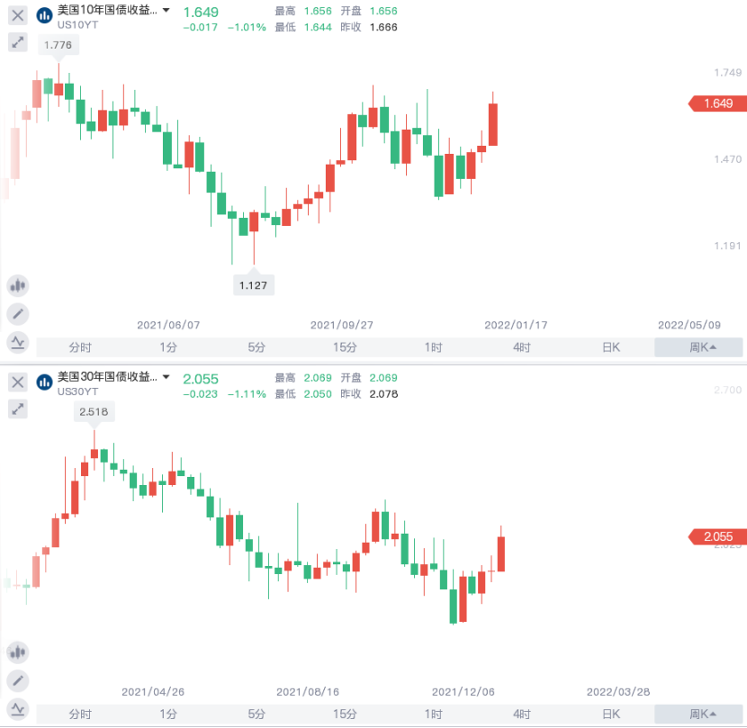 2022年刚开始,美债收益率已经连续两天实现上涨,因市场越来越担心通胀上升将促使美联储采取更激进的紧缩货币政策。