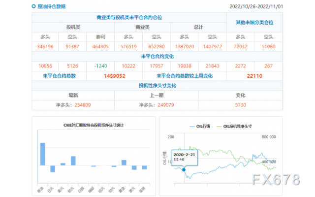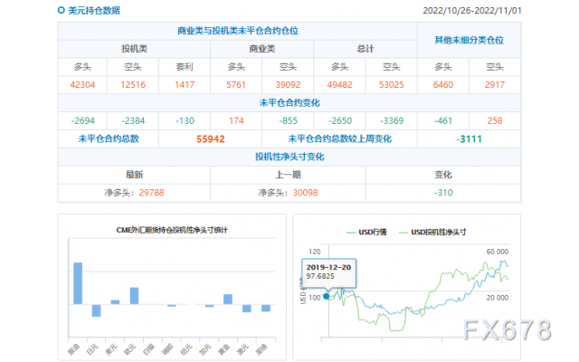 CFTC持仓数据:截至11月1日当周,美元净多头头寸骤降至30.8亿美元,为2021年8月17日来最低。投机者所持布伦特月WTI原油净多头头寸增加35291手至425866手合约,创最近18周新高。