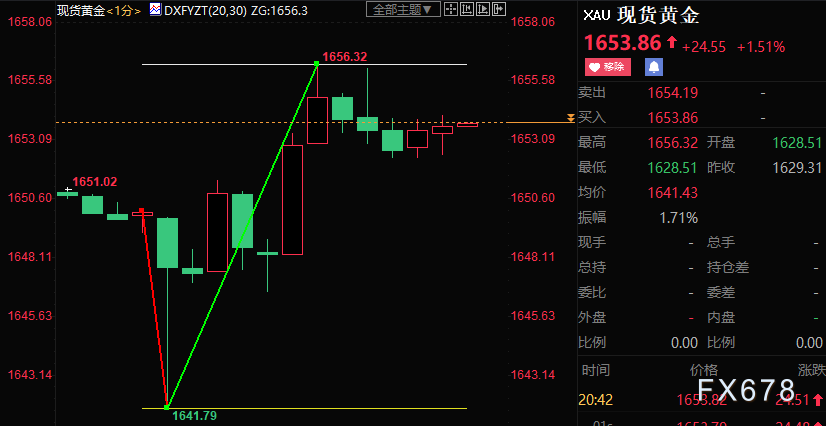 北京时间周五(11月4日)20:30,美国劳工部公布的10月非农数据创下2020年12月以来最小增幅,失业率上升,但劳动参与率下降。截止发稿,现货黄金急跌近8美元至1641.79美元/盎司后反弹逾14美元至1656.32美元/盎司。
