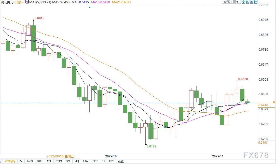 北京时间11月10日14:38,澳元兑美元报0.6419/20