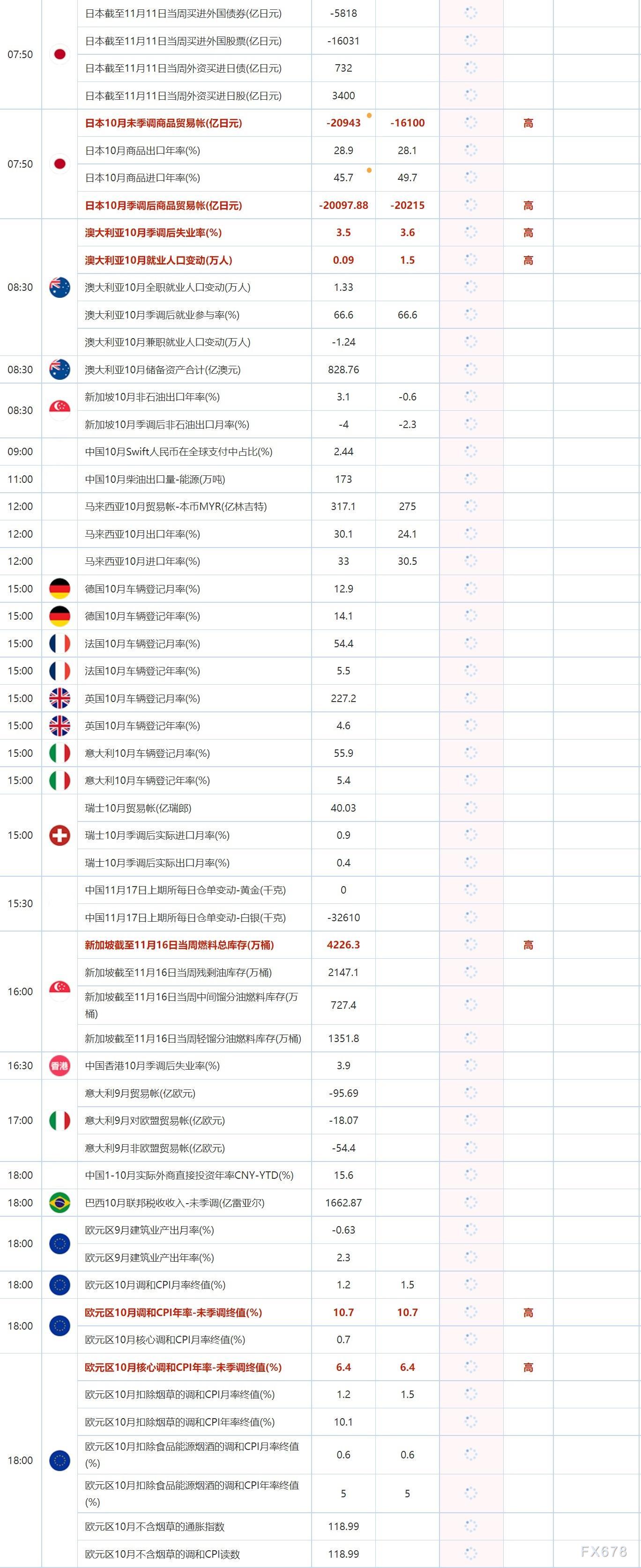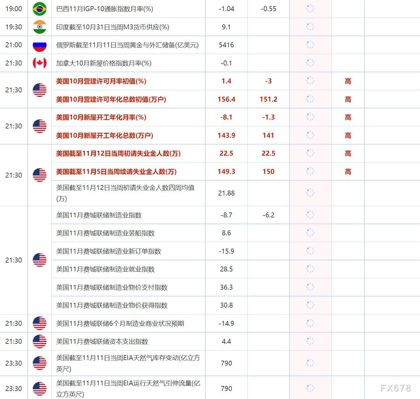 11月17日,投资者需要关注的重点数据:日本10月未季调商品贸易帐,澳大利亚10月季调后失业率,欧元区10月核心调和CPI年率-未季调终值,美国截至11月12日当周初请失业金人数,美国截至11月5日当周续请失业金人数,美国10月营建许可月率初值,美国10月新屋开工年化月率。