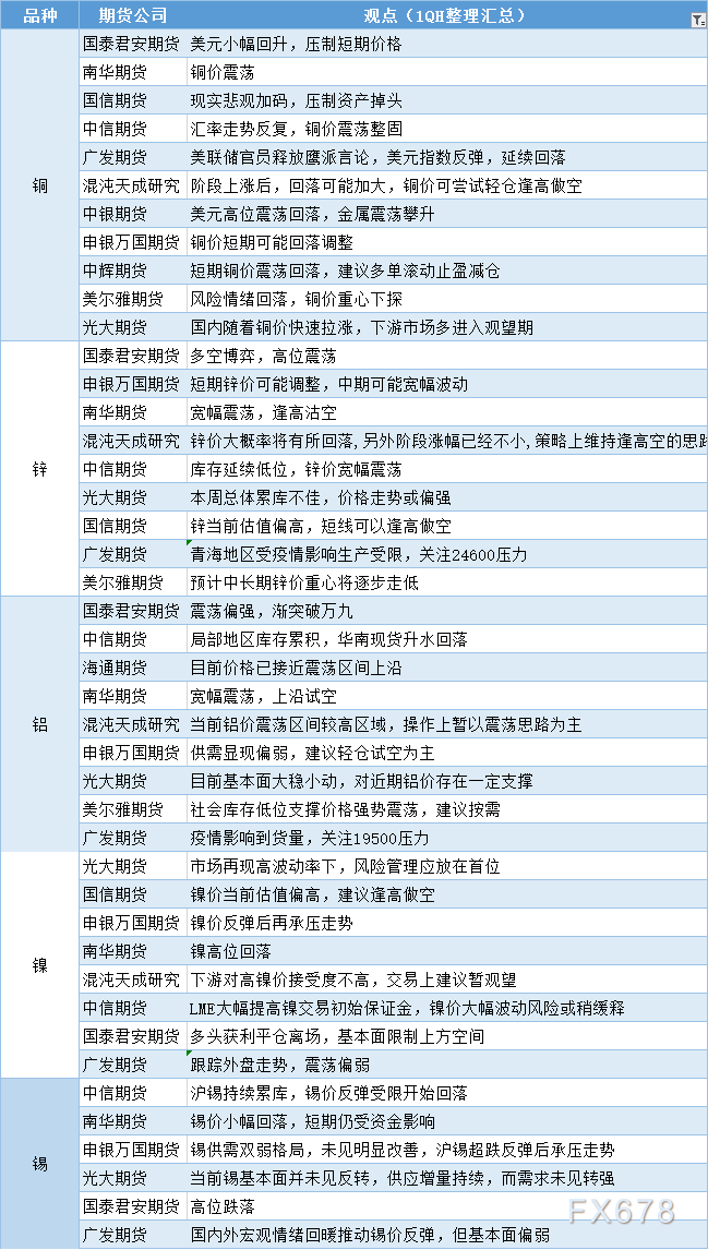 期货公司观点汇总一张图:6月26日有色系(铜、锌、铝、镍、锡等)