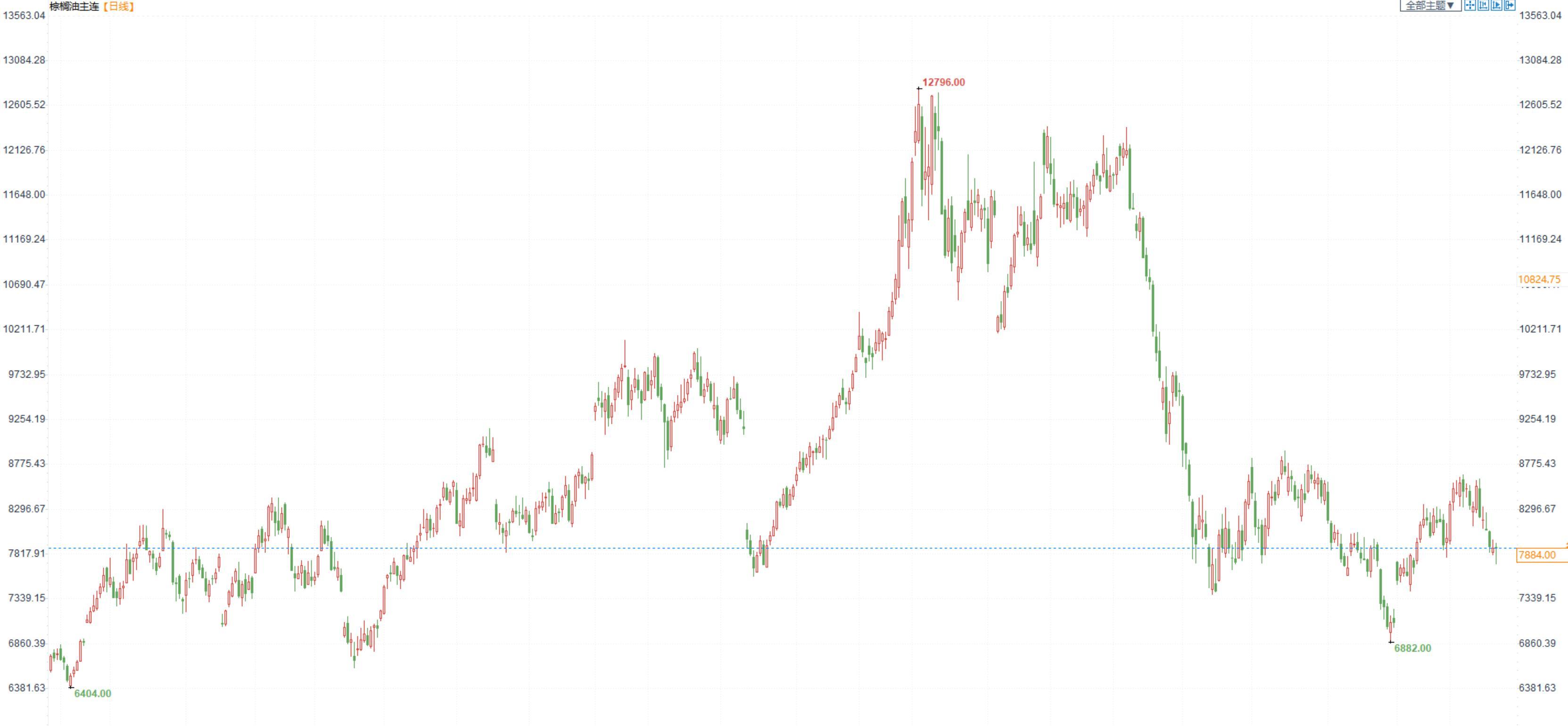 棕榈油2301合约日内跌0.15%,收盘7884元/吨;广州市场棕榈油7980元/吨。