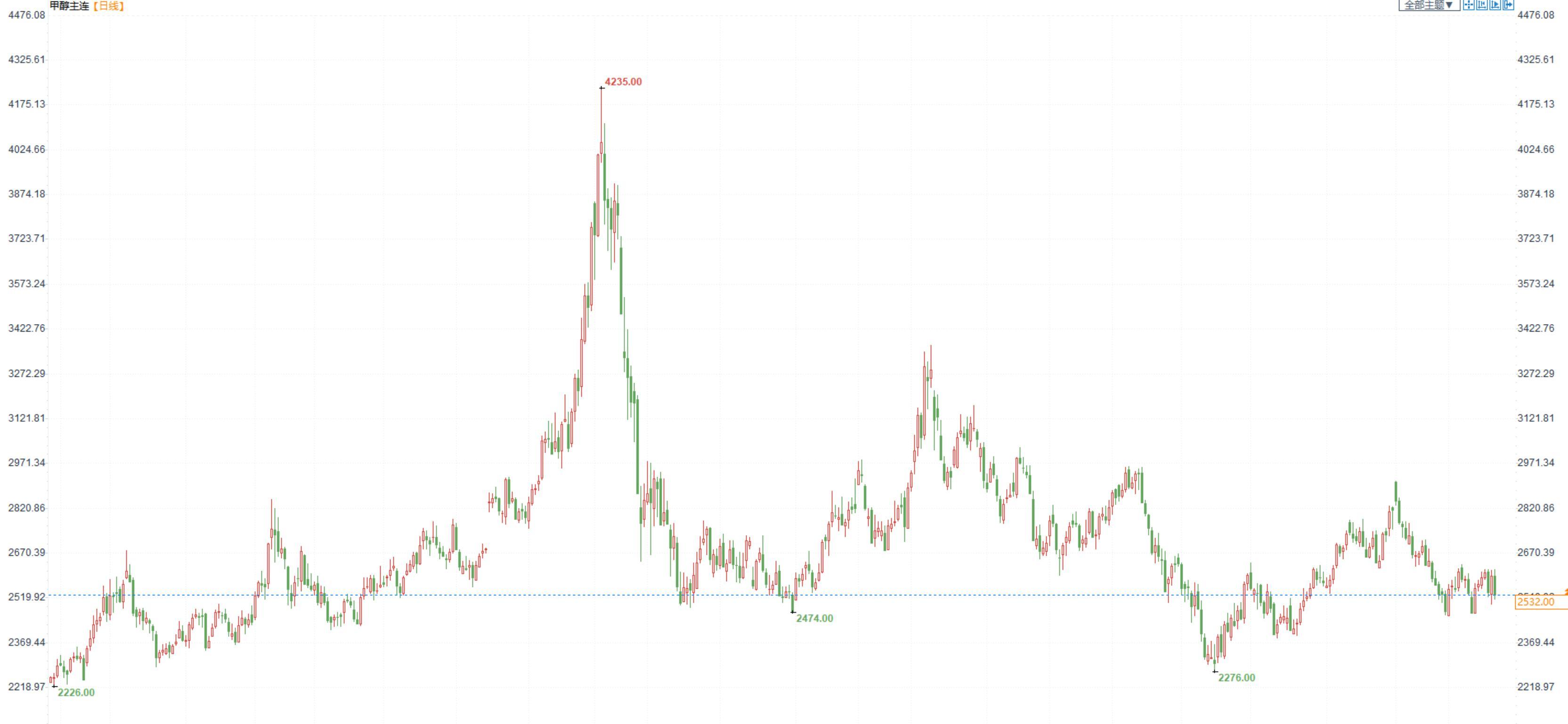 期货市场,甲醇2301合约跌超2%,收盘价2532。
