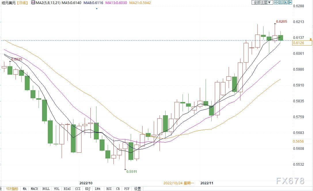 这在很大程度上得益于全球市场环境的改善,投资者感觉美联储将开始放缓加息周期,因此未来几天市场的走势对纽元来说非常重要。但这一涨幅也是投资者对新西兰利率预期重新定价的结果。