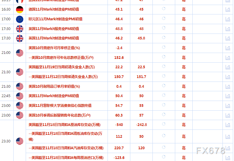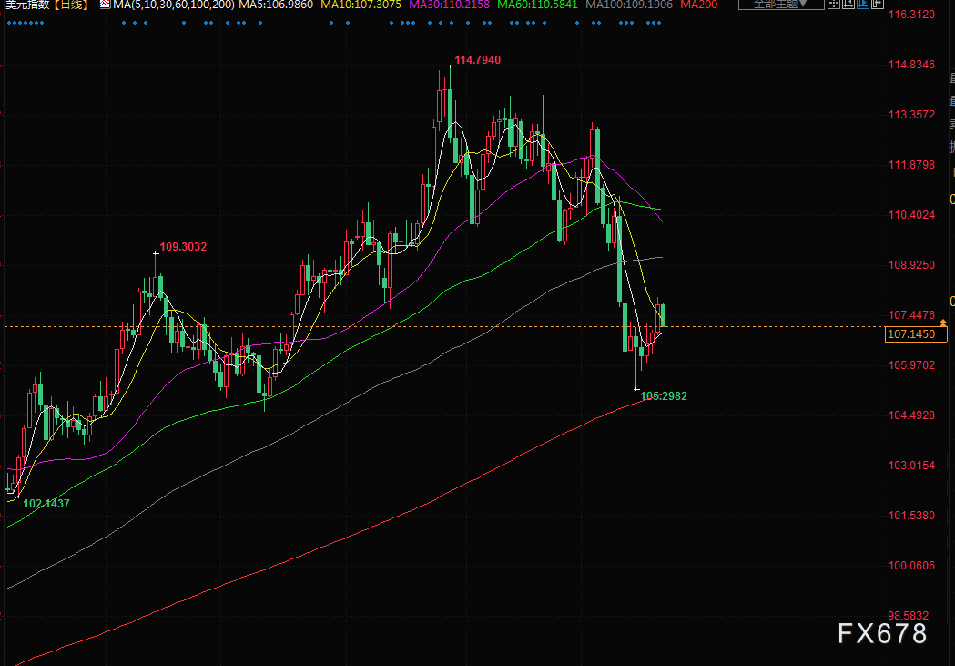 北京时间周三(11月23日)亚市早盘,美元指数交投于107.16附近;周二美元回落,回吐了上一交易日的部分涨幅,因为投资者提振了对风险较高货币的需求,股市、大宗商品和风险较高货币大多走强,对全球经济前景的担忧增加。;金价持于上一交易日触及的低位上方,美元和指标美债收益率回落与股市上涨基本相抵,投资者在等待有关美联储货币政策路径的线索。油价周二上涨超1%,此前全球最大石油出口国沙特表示OPEC+坚持减产,并可能采取进一步措施平衡市场支撑油价。