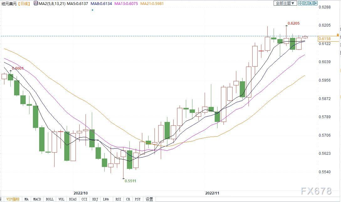 北京时间11月23日8:24,纽元兑美元报0.6158/60
