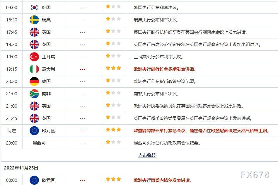 虽然周四将迎来美国感恩节假期,但亚洲时段仍需留意美联储会议纪要(略微偏鸽)的进一步影响发酵情况。
