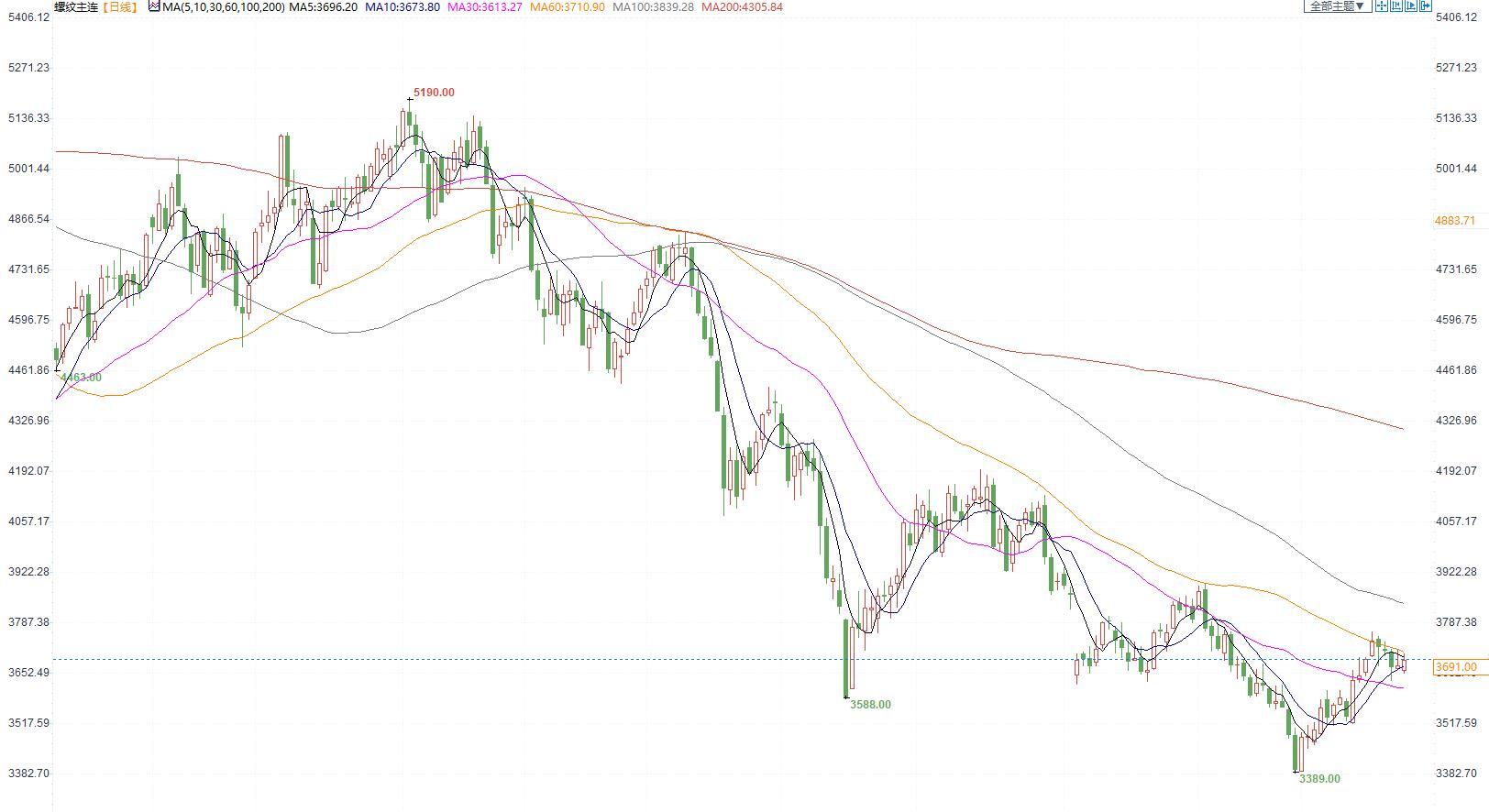 价格:螺纹钢2301价格整体呈现宽幅震荡,午盘后出现拉升,收盘3691元/吨,小幅收涨0.11%。上海中天现货价3740元/吨,环比减少20元/吨。