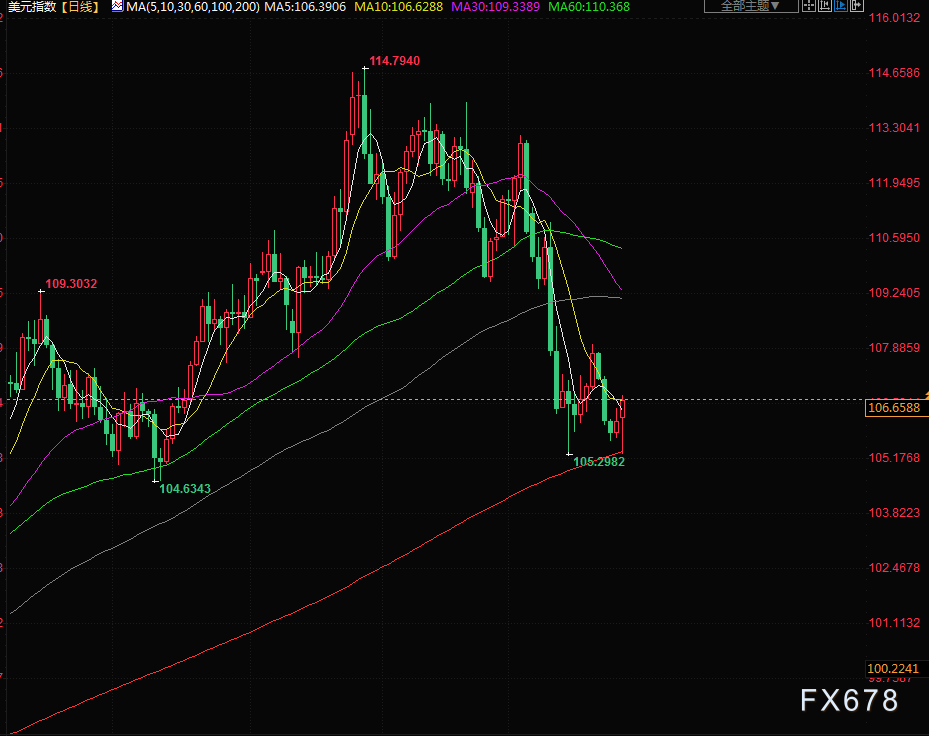 美元指数从9月28日触及的20年高点114.78跌至106.65,原因是市场预期其涨势可能已经过头,而且美联储希望放缓加息步伐。